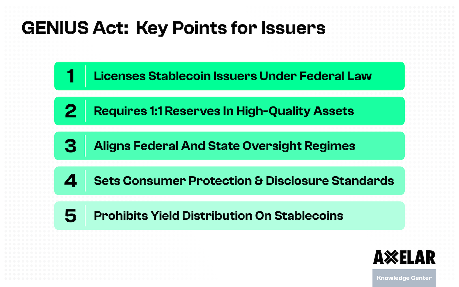 In the post-GENIUS Act landscape, stablecoin issuers have the regulatory clarity to operate at an institutional scale. But doing so will demand more than compliant reserves. It will require an operating framework that eliminates liquidity silos, streamlines rebalancing, and embeds compliance directly into crosschain flows. Axelar’s ITS and GMP provide this infrastructure, enabling treasury teams to manage liabilities across blockchains as seamlessly as moving funds between bank accounts. As Valla Vakili observed, “The companies that build around these new possibilities will determine what finance becomes.”12 Stablecoin issuers now have the tools to be among those companies, and to define the next era of global finance.